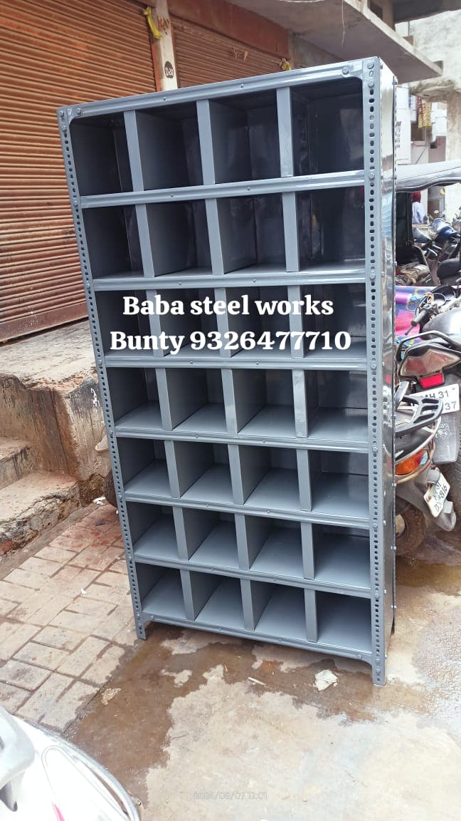 Baba Steel Works offers slotted angle racks, designed for: - Versatile storage: Holds various items, goods, and supplies. - Adjustable shelving: Customizable to fit specific needs. - Durable construction: High-quality steel materials ensure longevity. Their slotted angle racks are suitable for: - Warehouses: Storing goods and products. - Offices: Organizing office supplies and documents. - Homes: Storing household items and goods.